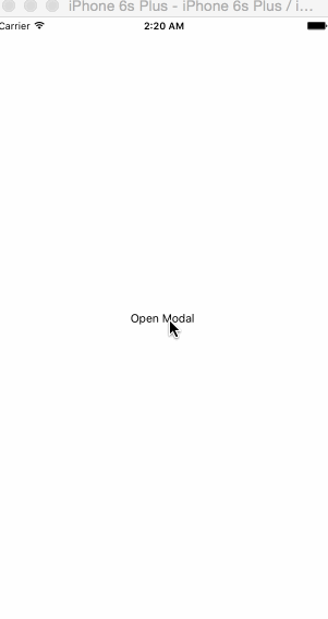 Here we have a basic modal. We set the translateY to the full device height so that it renders off screen, and on mount we slide it up in 100ms. On close we slide it down, call the closeModal which will trigger the re-render in our renderScene. This case we won't have modal: true set so our TopModal will just unmount.